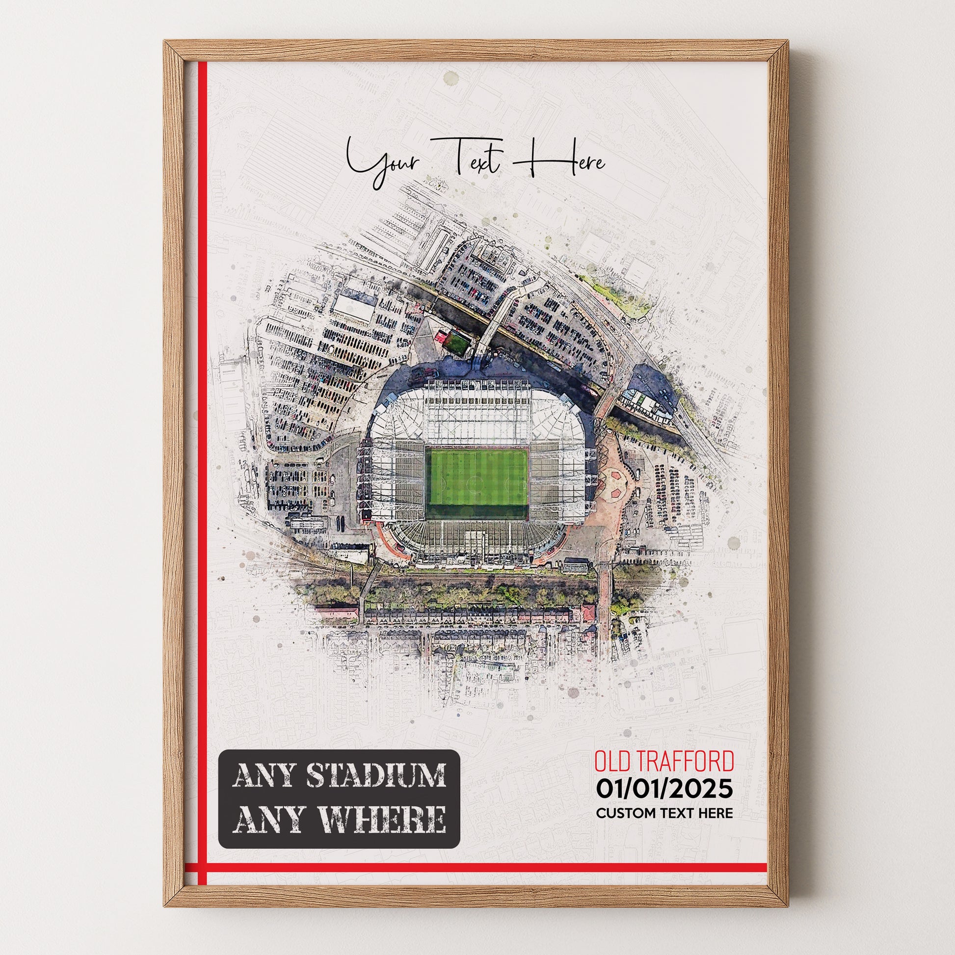 Bespoke Stadium Design Football Stadium Poster Artwork, Personalised Watercolour Art Print, Custom Aerial Layout - Framing options available ANY STADIUM Worldwide.