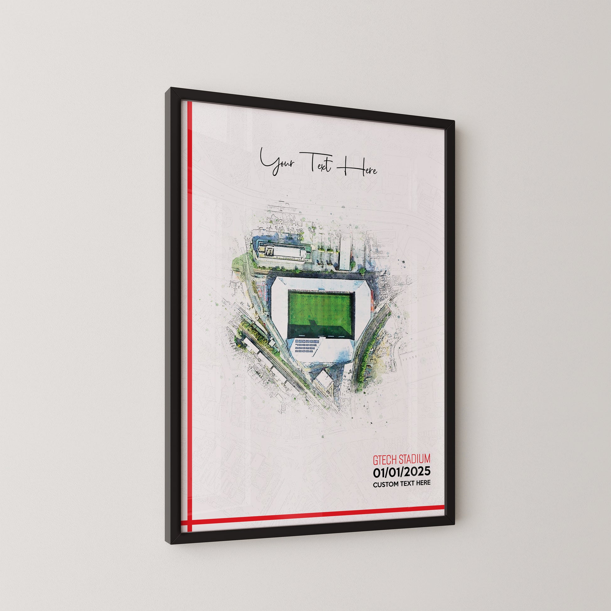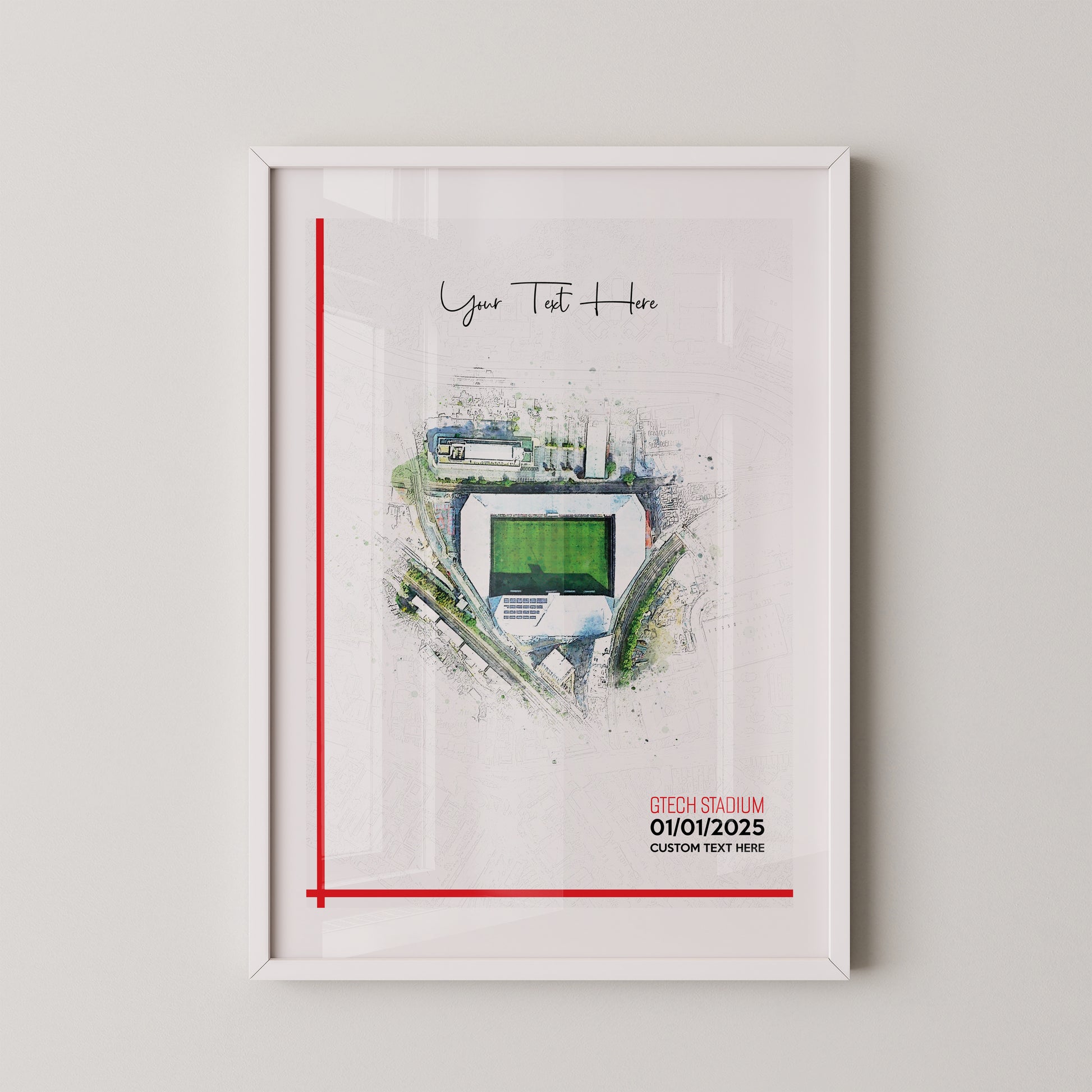 Brentford, 'Gtech Stadium' Football Stadium Poster Artwork, Personalised Watercolour Art Print, Custom Aerial Layout - Framing options available ANY STADIUM Worldwide.