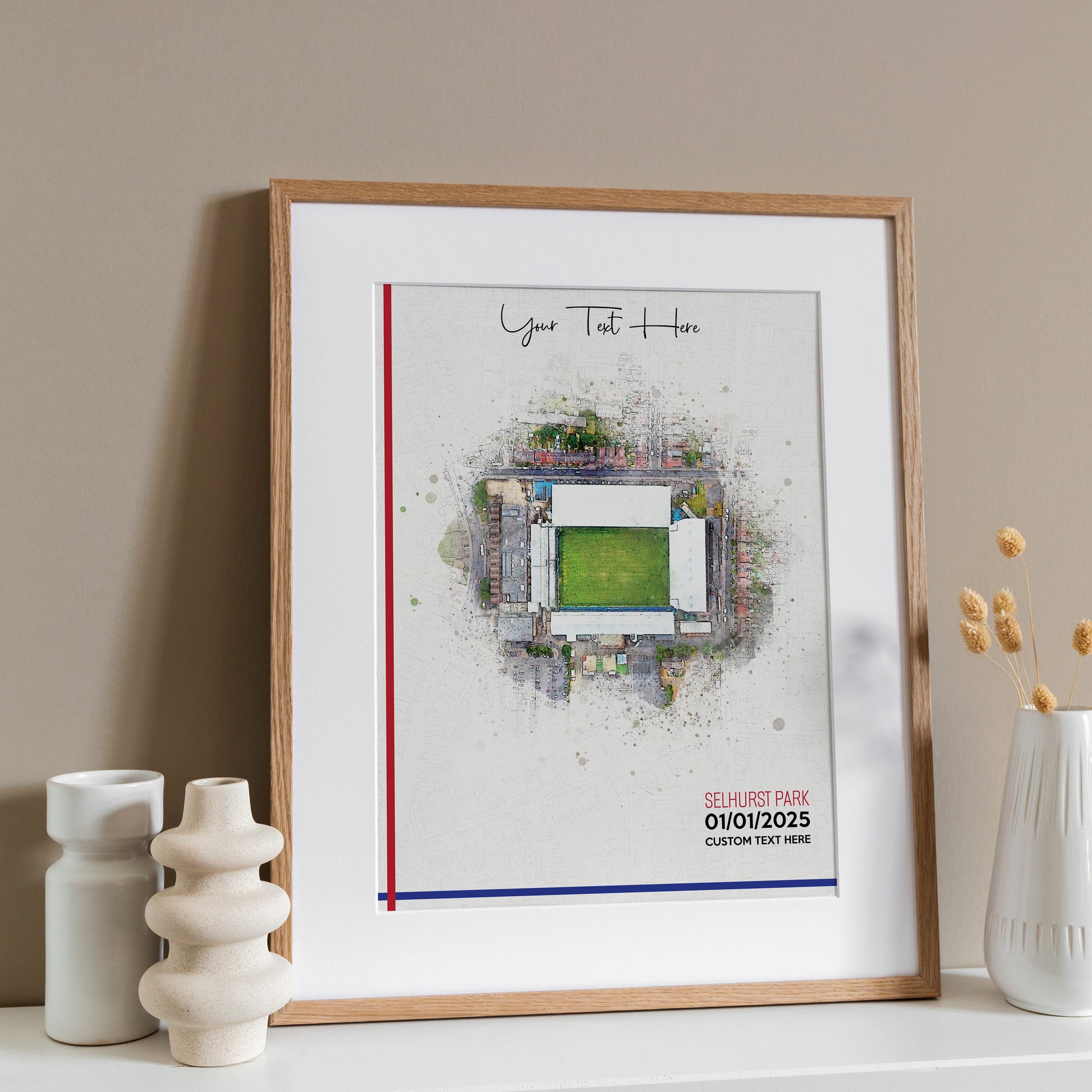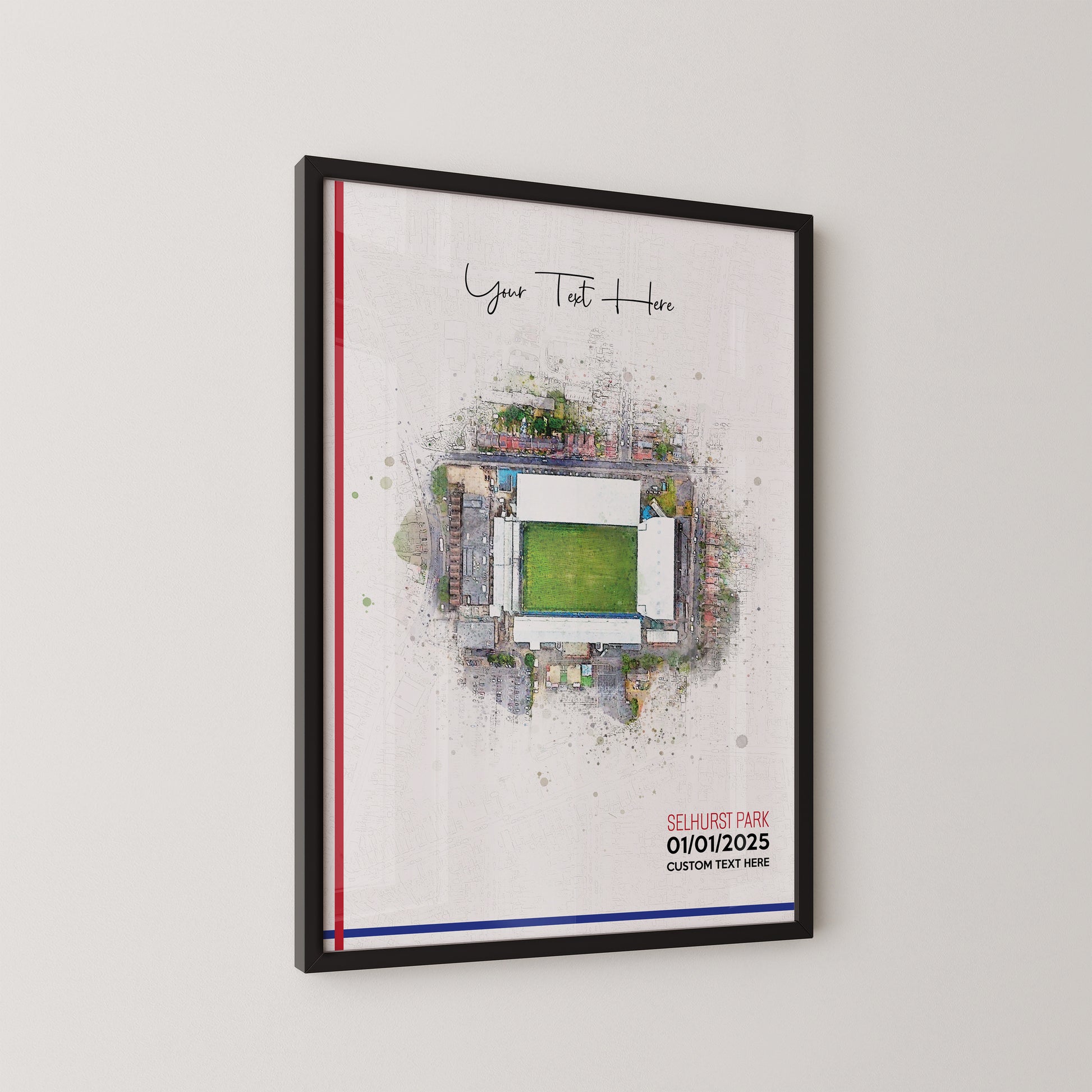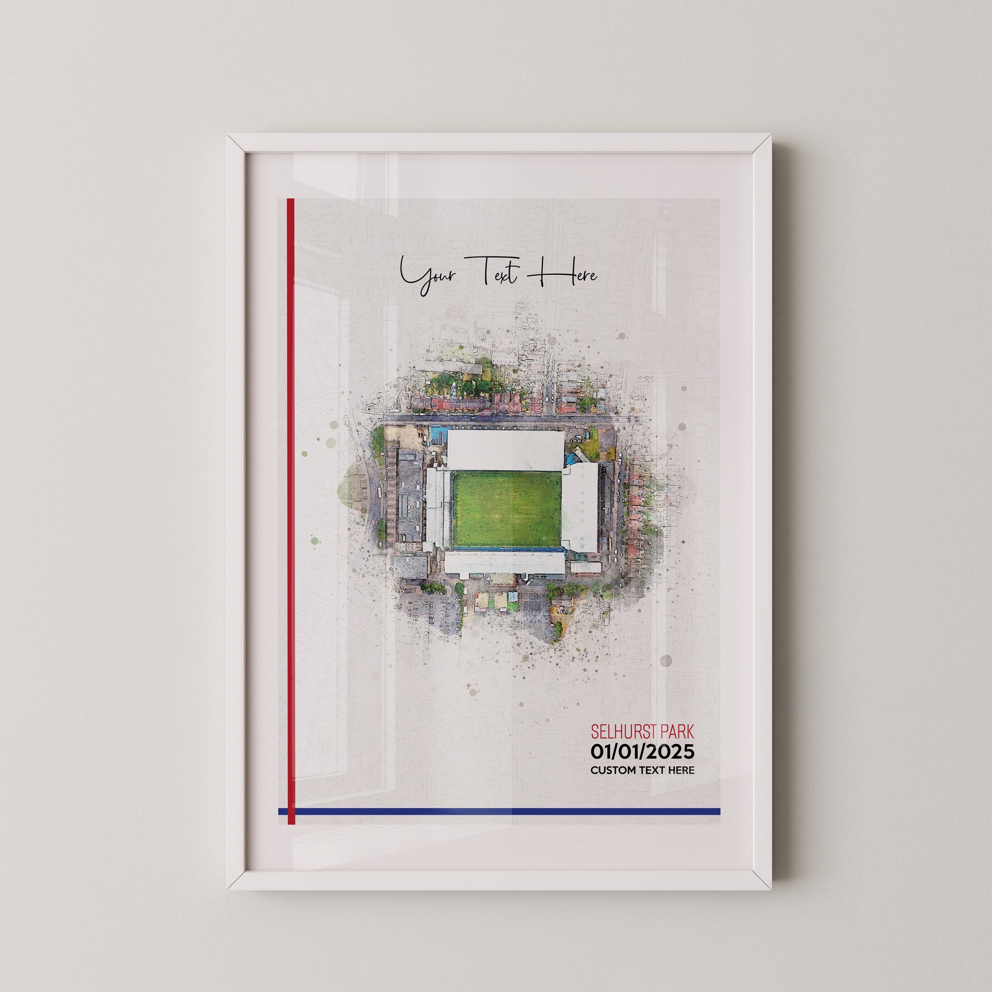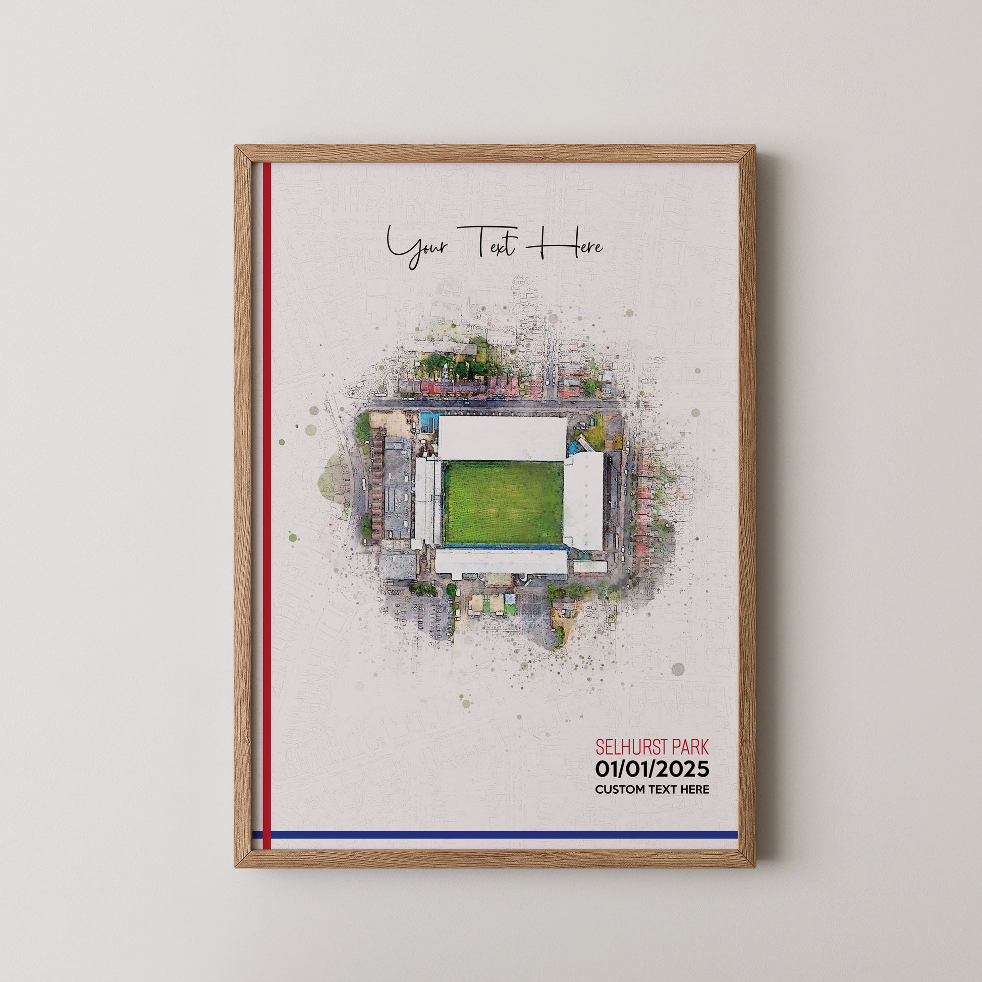 Crystal Palace, 'Selhurst Park' Football Stadium Poster Artwork, Personalised Watercolour Art Print, Custom Aerial Layout - Framing options available ANY STADIUM Worldwide.