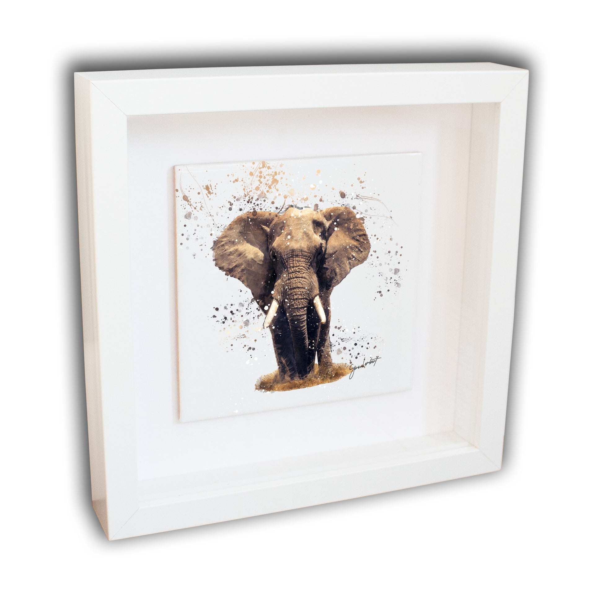 Elephant Portrait Brush Splatter Style Artwork - Framed CERAMIC TILE Art