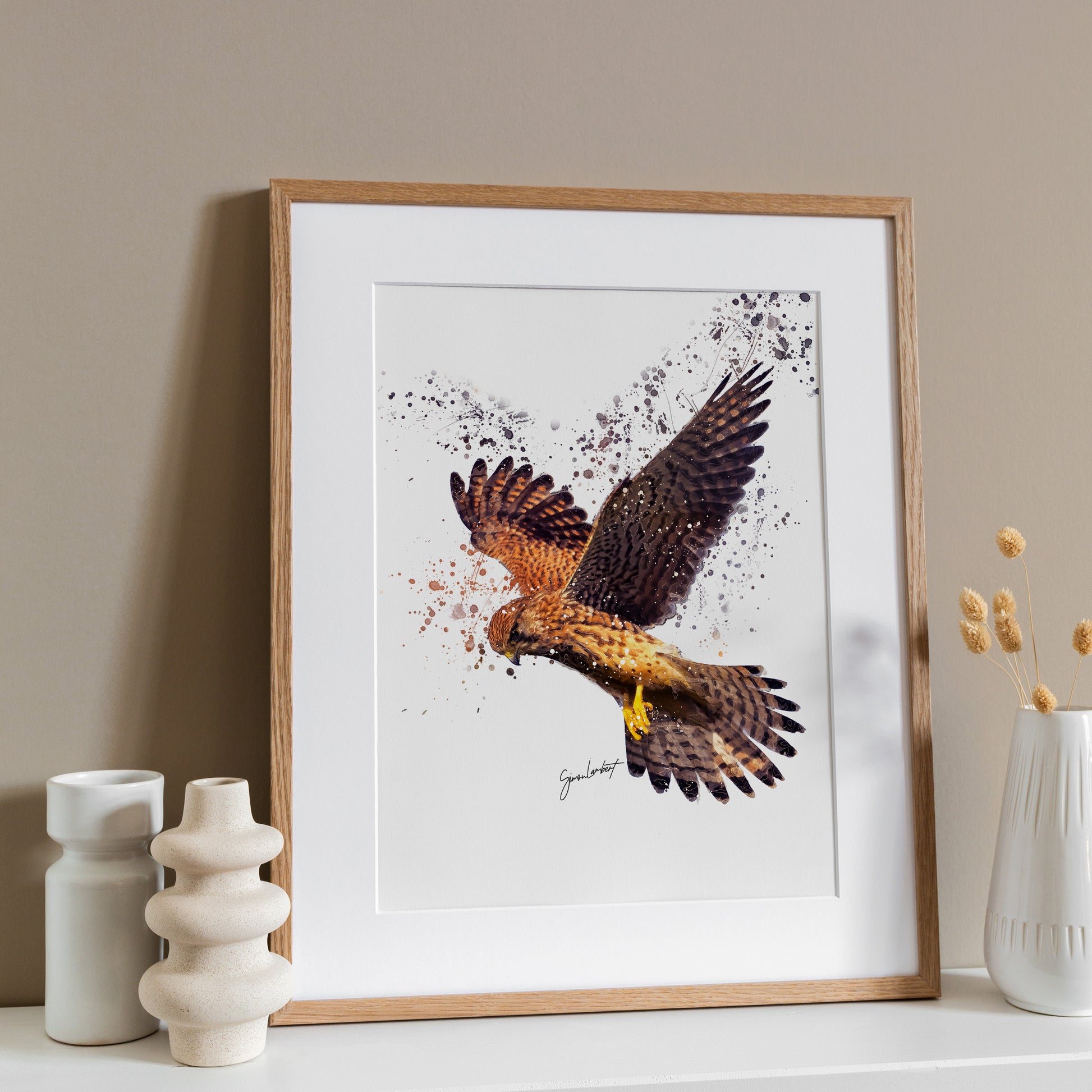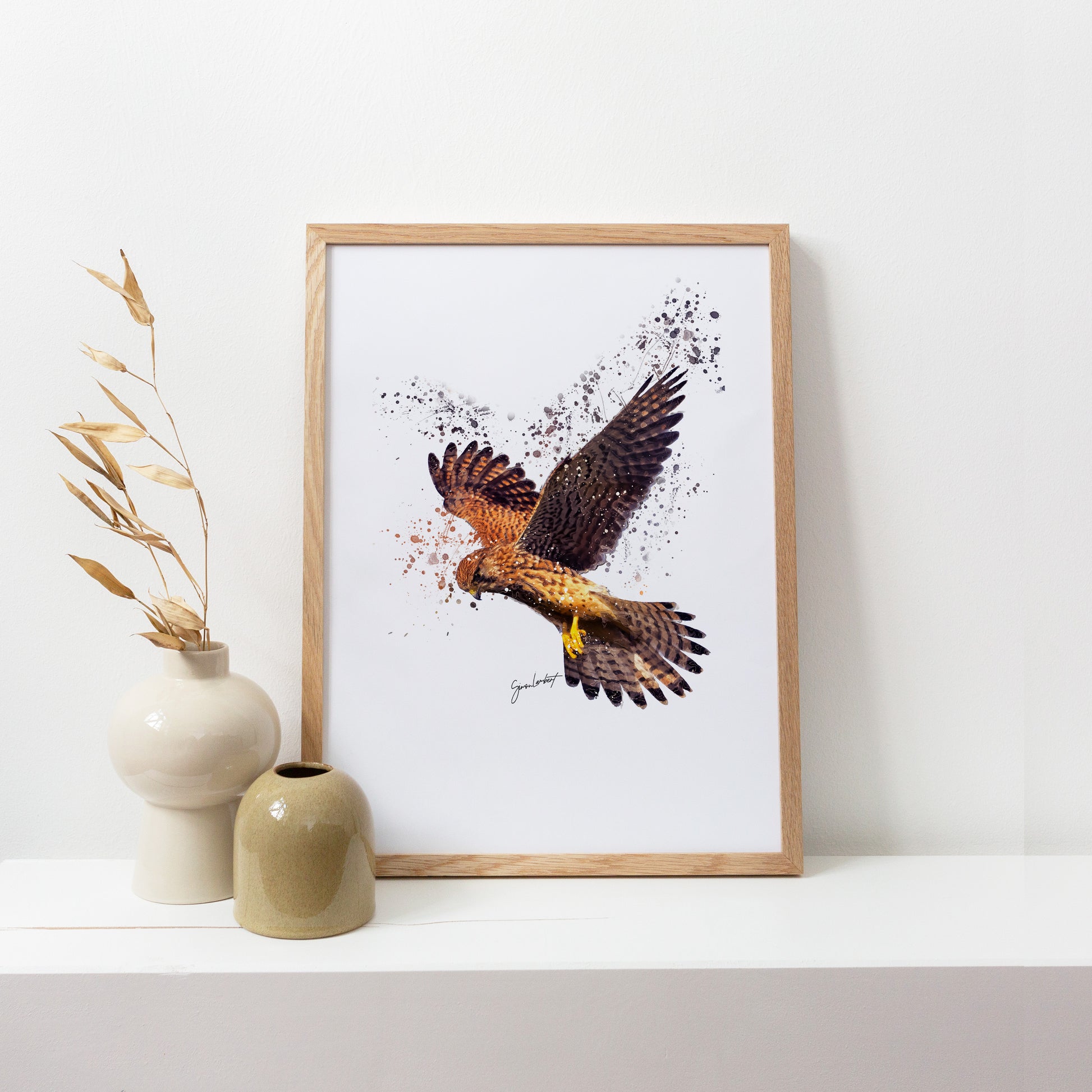 Kestrel Bird Splatter Art Print.