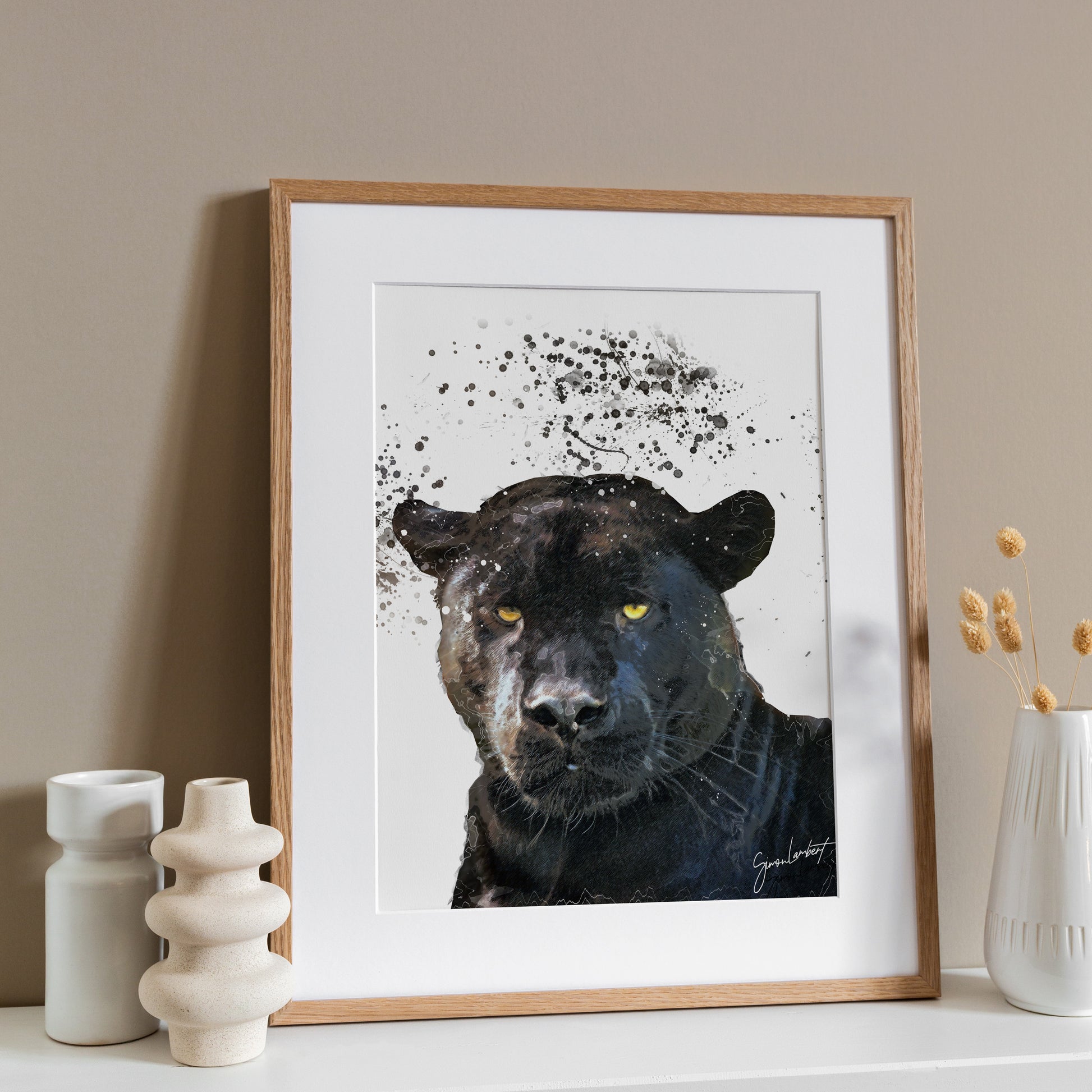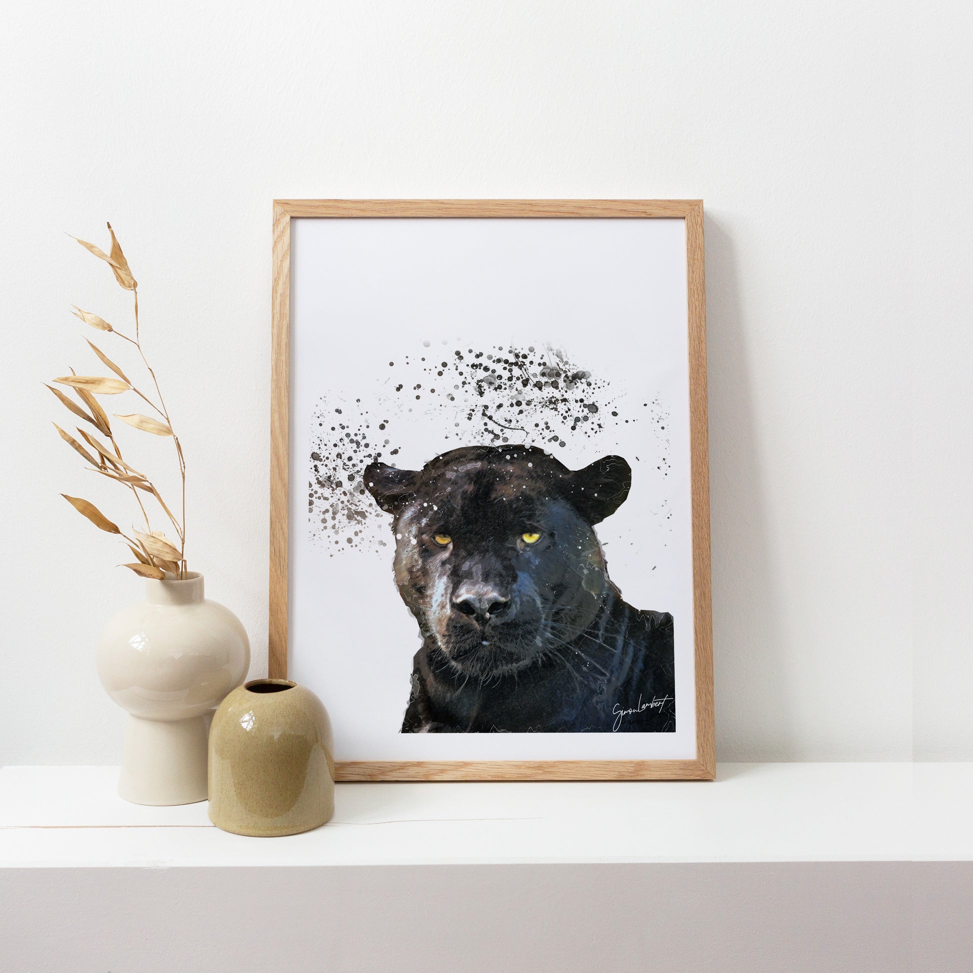 Panther Portrait Splatter Style Artwork Fine Art Print (Unframed)