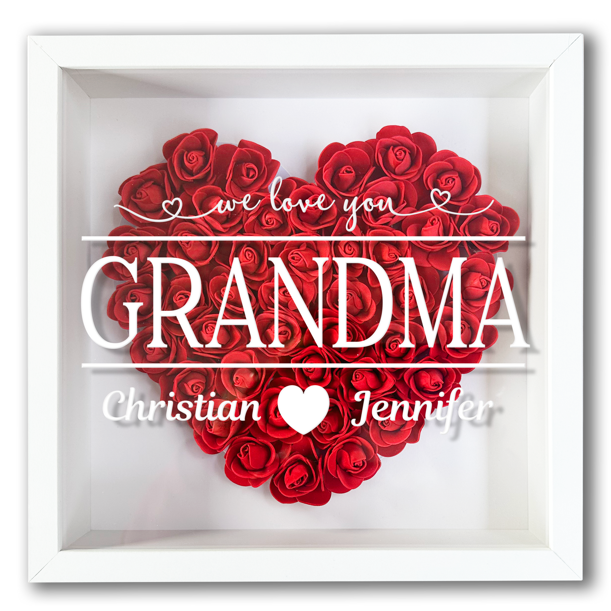 Personalised Framed Flower Floral Heart Grandmother Nanny Grandma Custom Birthday Keepsake Unique Gift Heart Flower Roses Shadow Box Frame