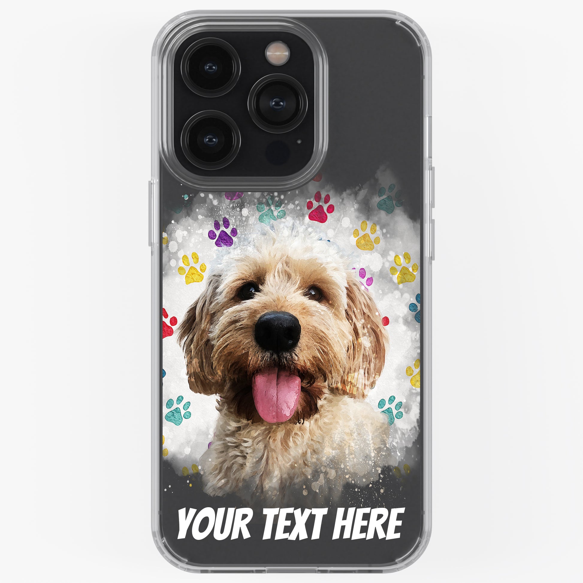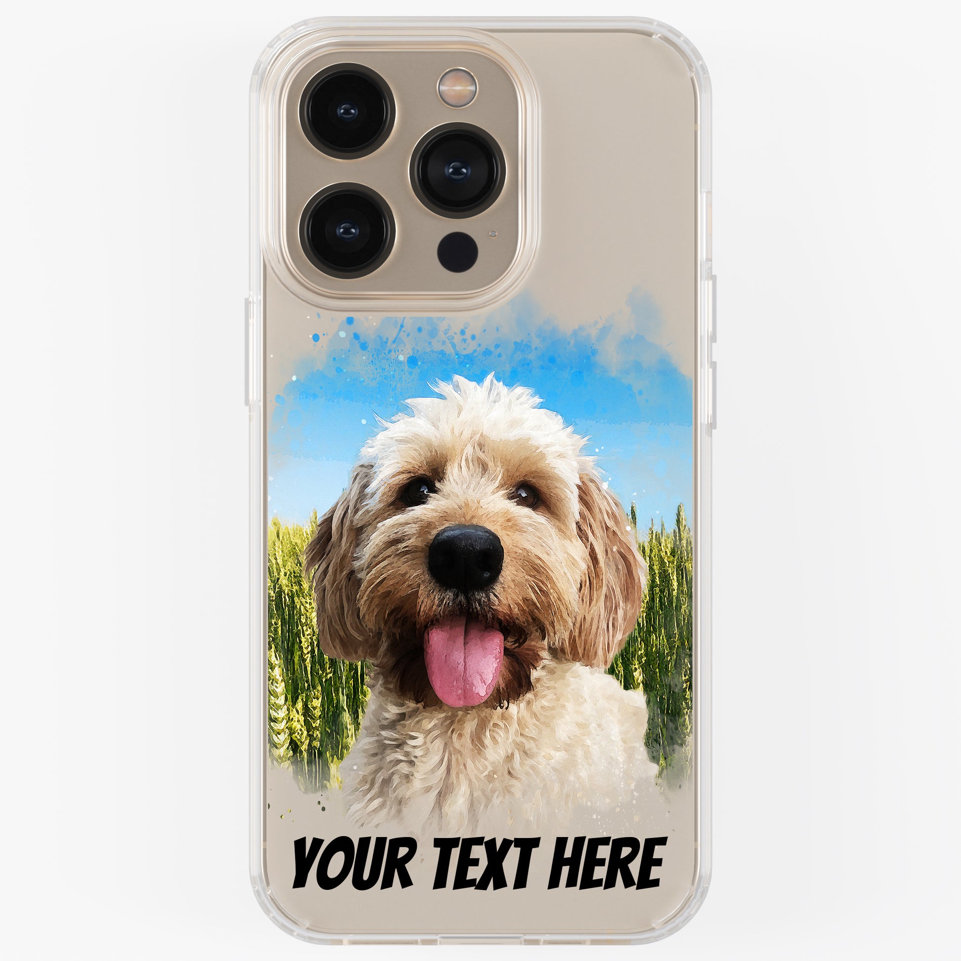Personalised Pet Portrait Phone Case – Clear Silicone with Custom Brush Art Background | iPhone & Samsung