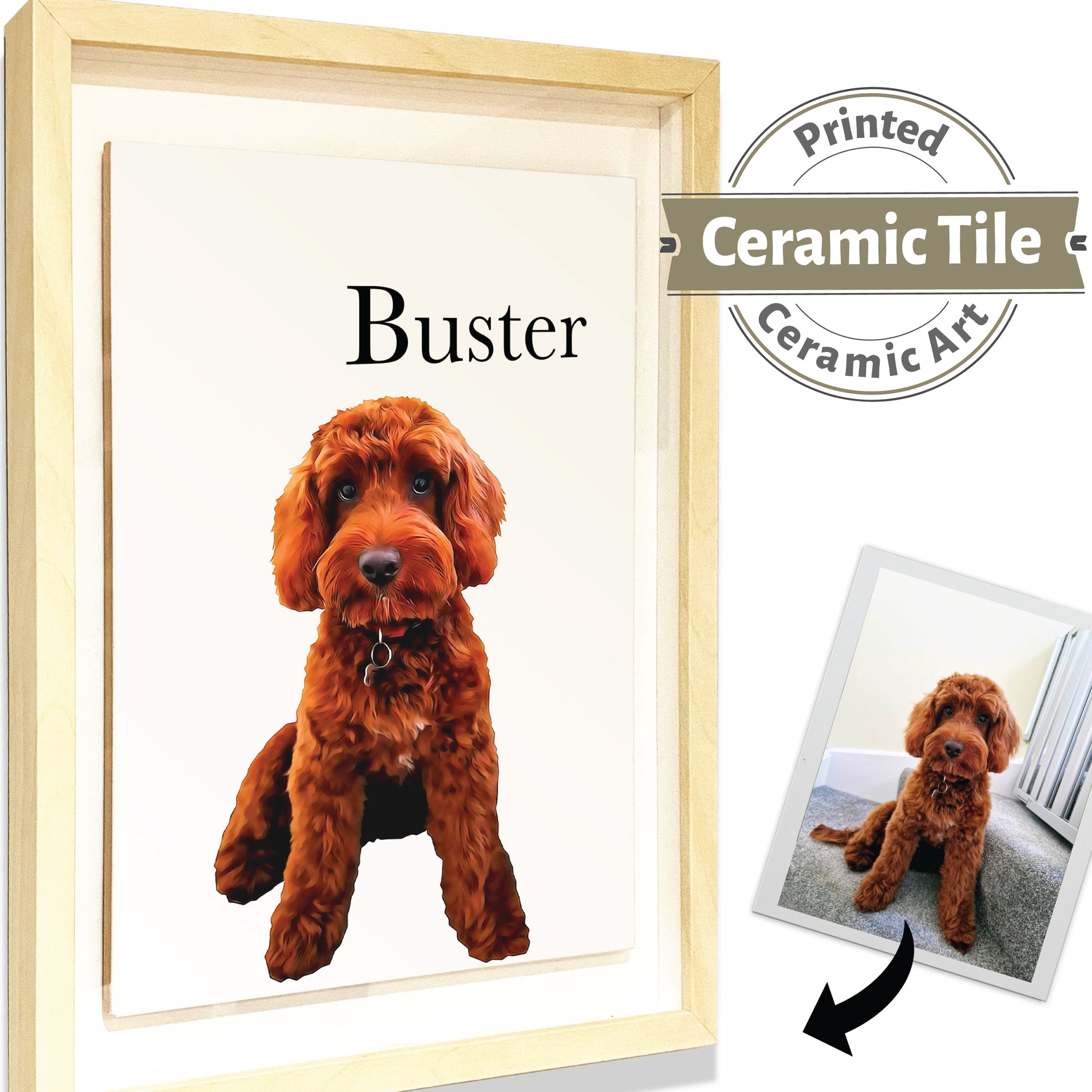 Personalised Pet Painting Portrait Framed CERAMIC Tile Art.