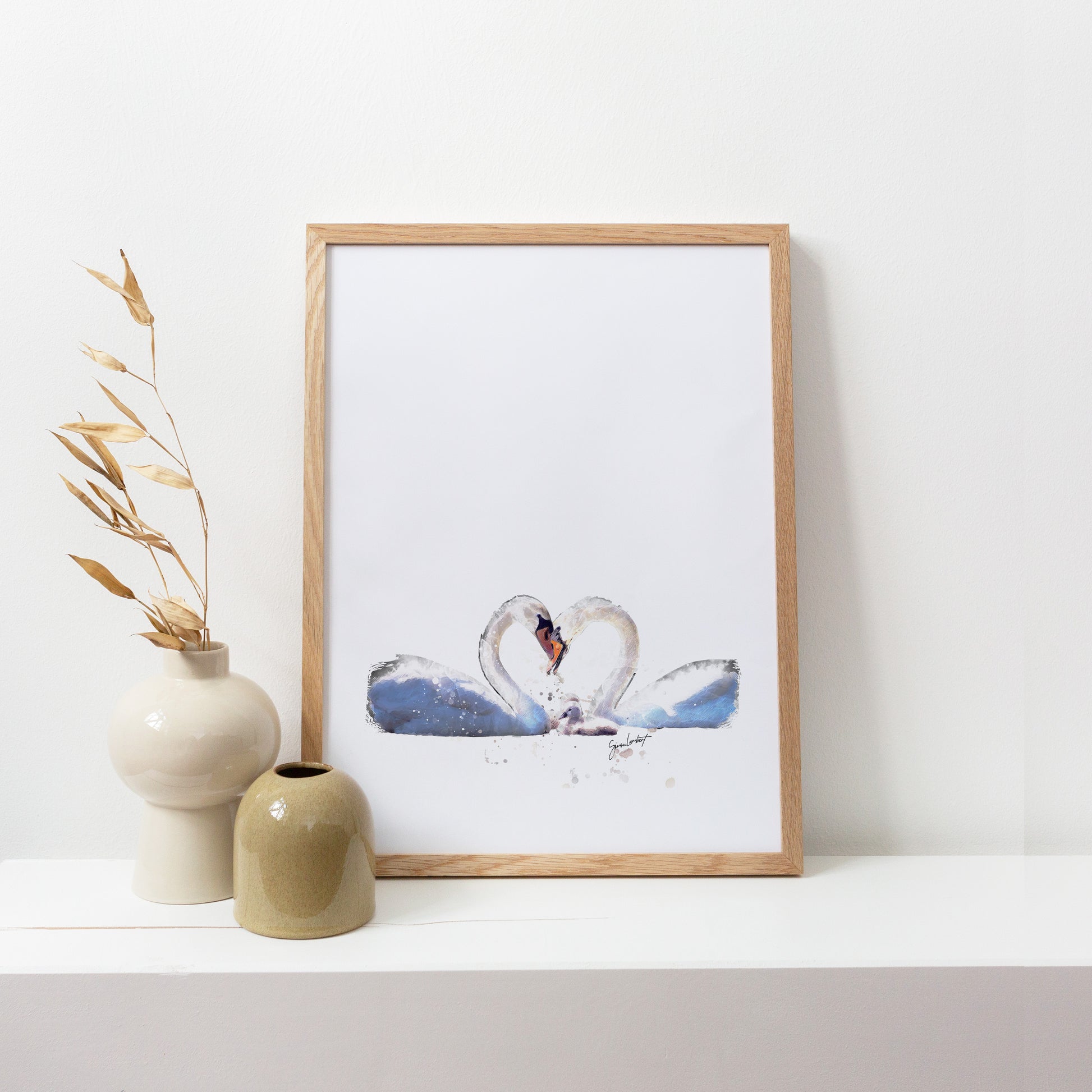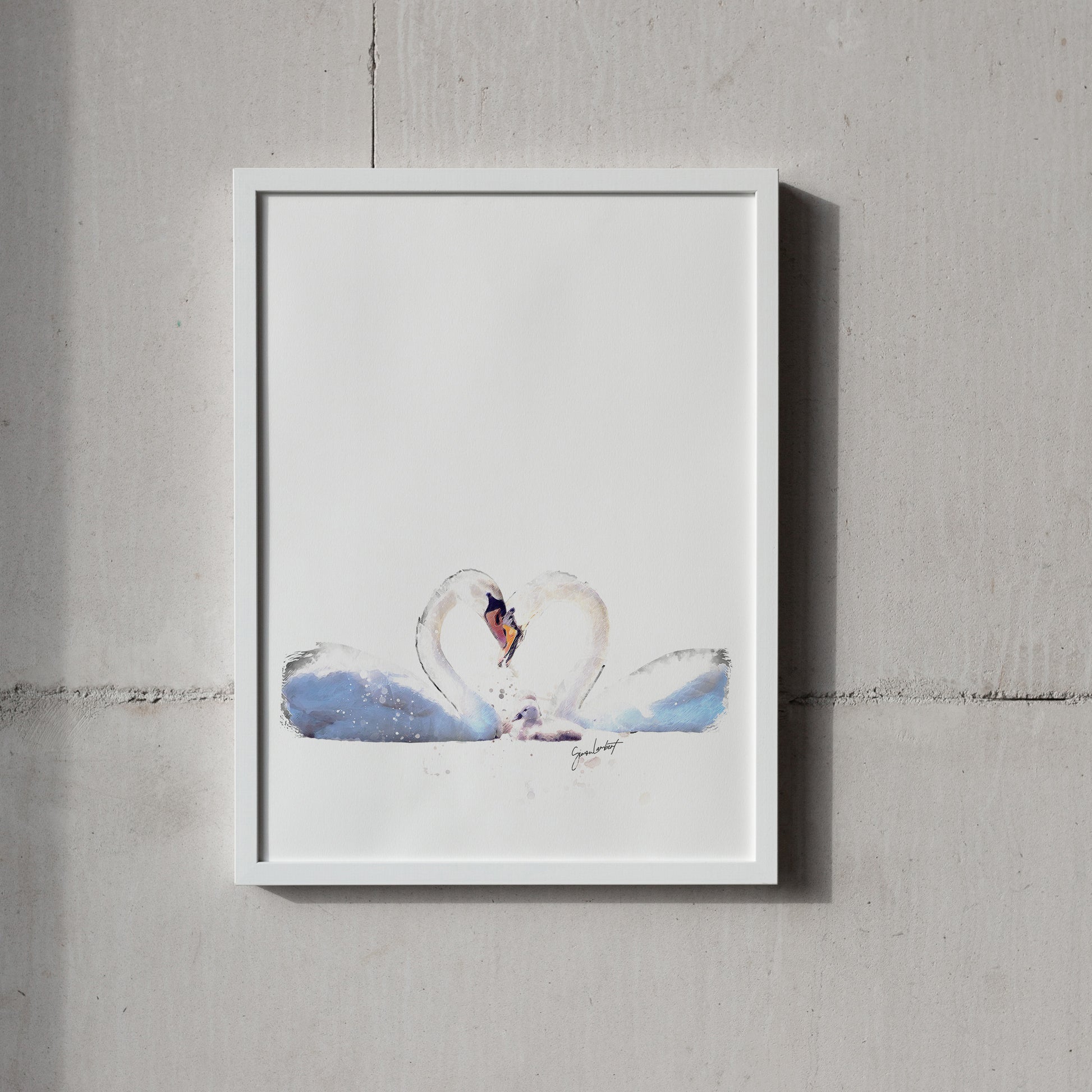 Swan Family Portrait Splatter Style Artwork Fine Art Print (Unframed)