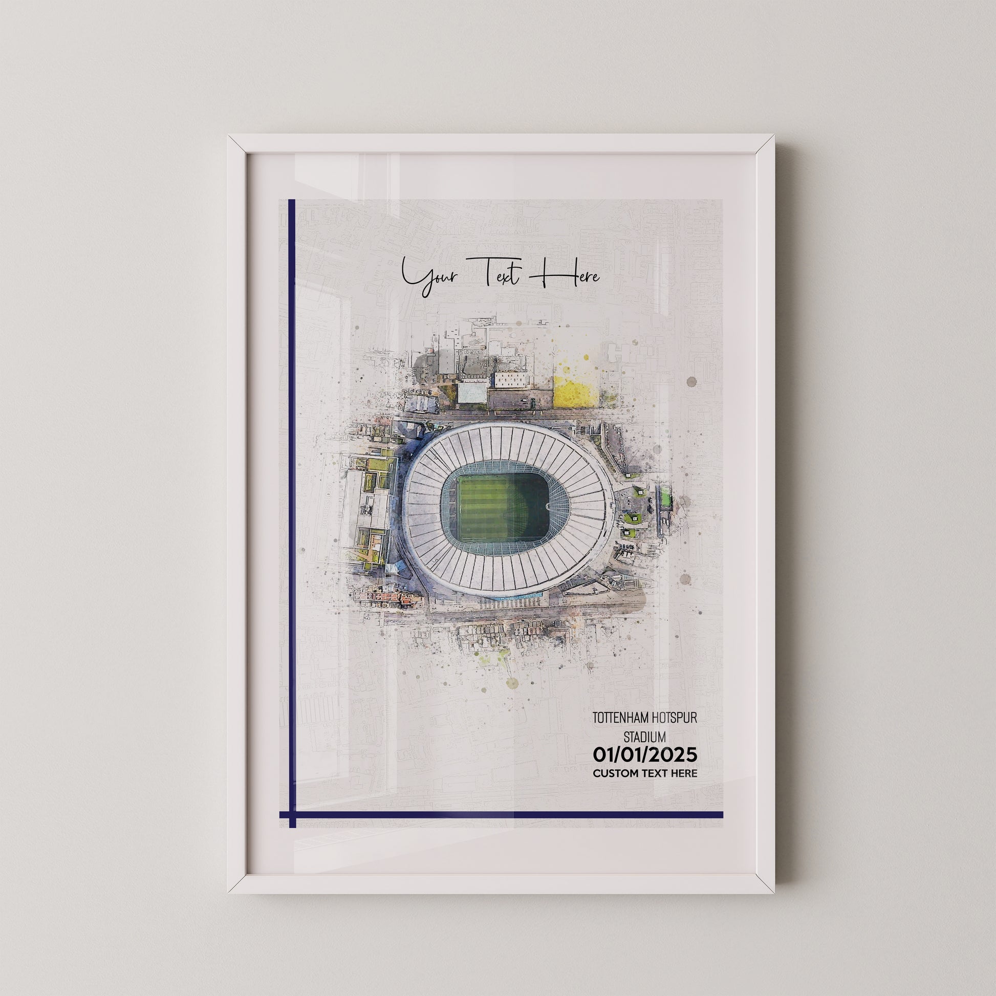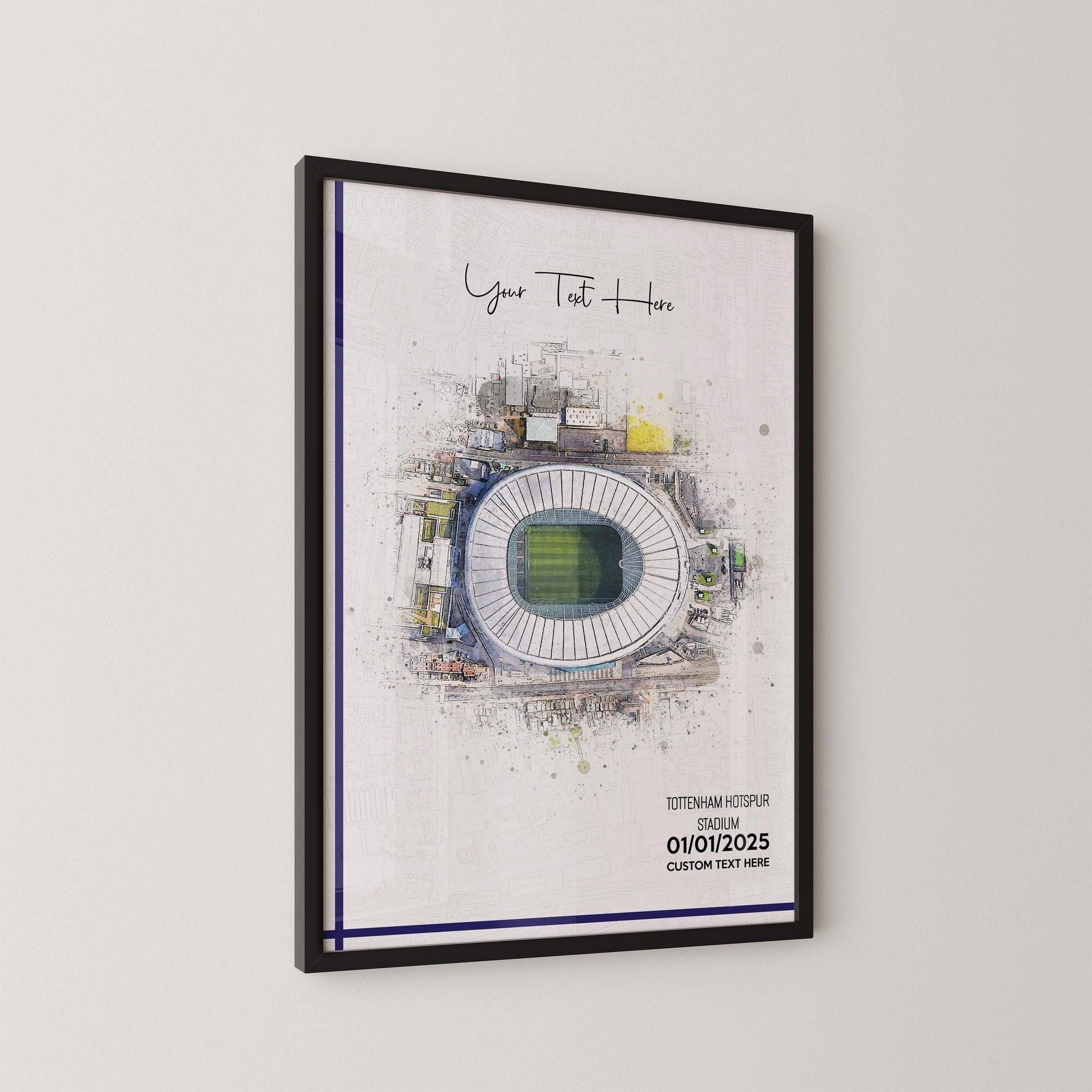Tottenham Hotspur, 'London Stadium' Football Stadium Poster Artwork, Personalised Watercolour Art Print, Custom Aerial Layout - Framing options available ANY STADIUM Worldwide.